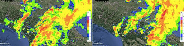 Deboli precipitazioni intermittenti hanno interessato il territorio regionale già dalle prime ore del giorno 23 ottobre. A metà mattinata le precipitazioni, a carattere forte-moderato, si sono introdotte sull’Appennino della provincia di Parma estendendosi in un secondo momento alla pianura e transitando sul resto della Regione. Le precipitazioni si sono ulteriormente intensificate a partire dalle 12.30: inizialmente sui versanti appenninici e in collina, poi anche in pianura. Nel corso del pomeriggio i fenomeni hanno assunto carattere temporalesco con la formazione di una linea di precipitazioni intense tra le province di Bologna e Ferrara, interessando anche l’Appennino della provincia di Bologna. Le piogge si sono poi rapidamente esaurite nel corso della serata.